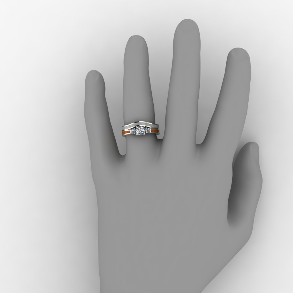 As discussed in messages and pictured: A 14k white gold ring made to fit around the original engagement ring, inlaid with meteorite shavings.